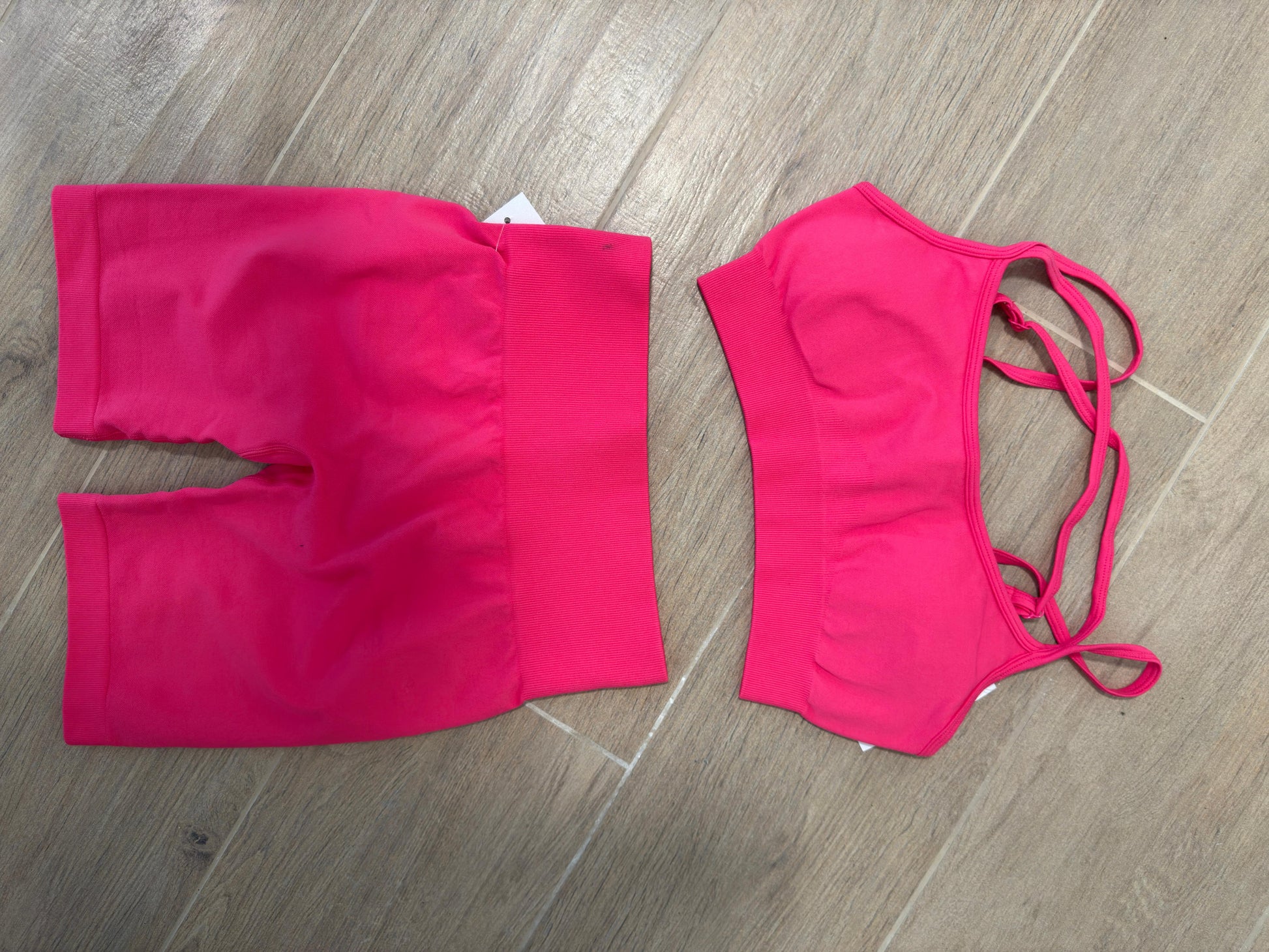 Completo sportivo con imbottitura nel top e rimane effetto rugoso nel retro del pantaloncino